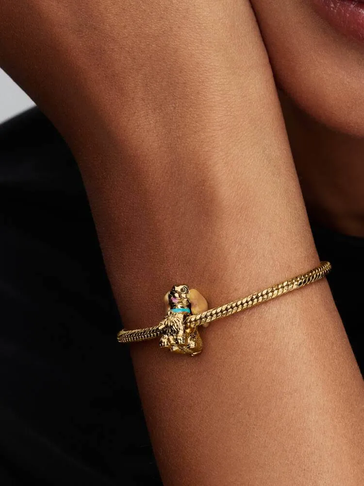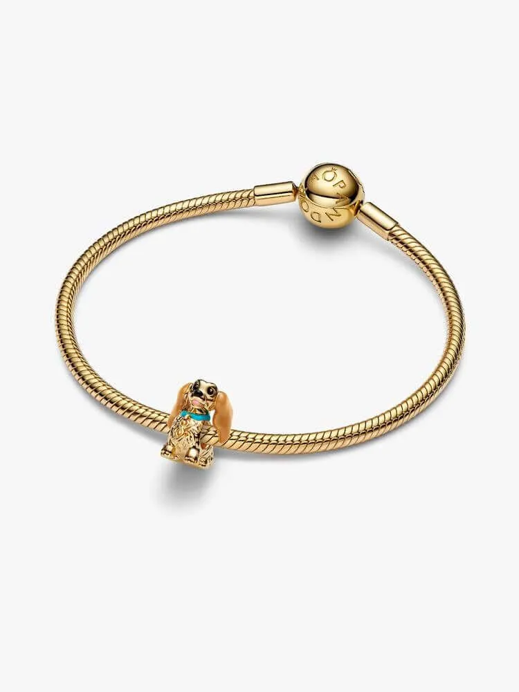 Shine like the perfect Lady with our charm inspired by Disney's Lady and the Tramp. Crafted in 14k gold plating with colourful enamel details, it features moveable ears and a collar with its own miniature charm.
