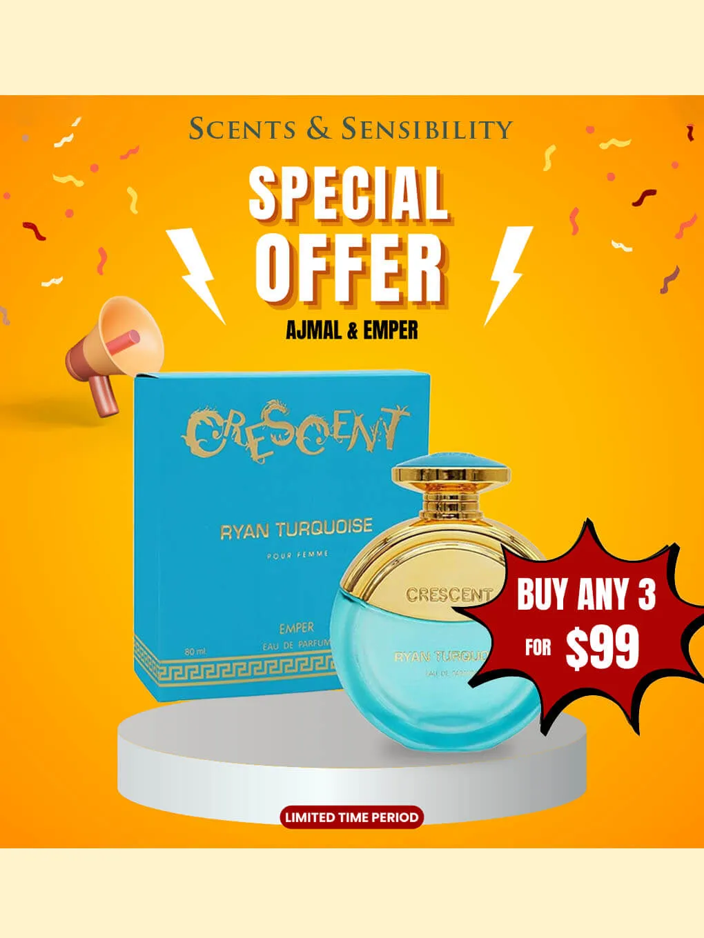 $99 FOR BUY ANY 3 PERFUMES – EMPER CRESCENT RYAN TURQUOISE 80ML