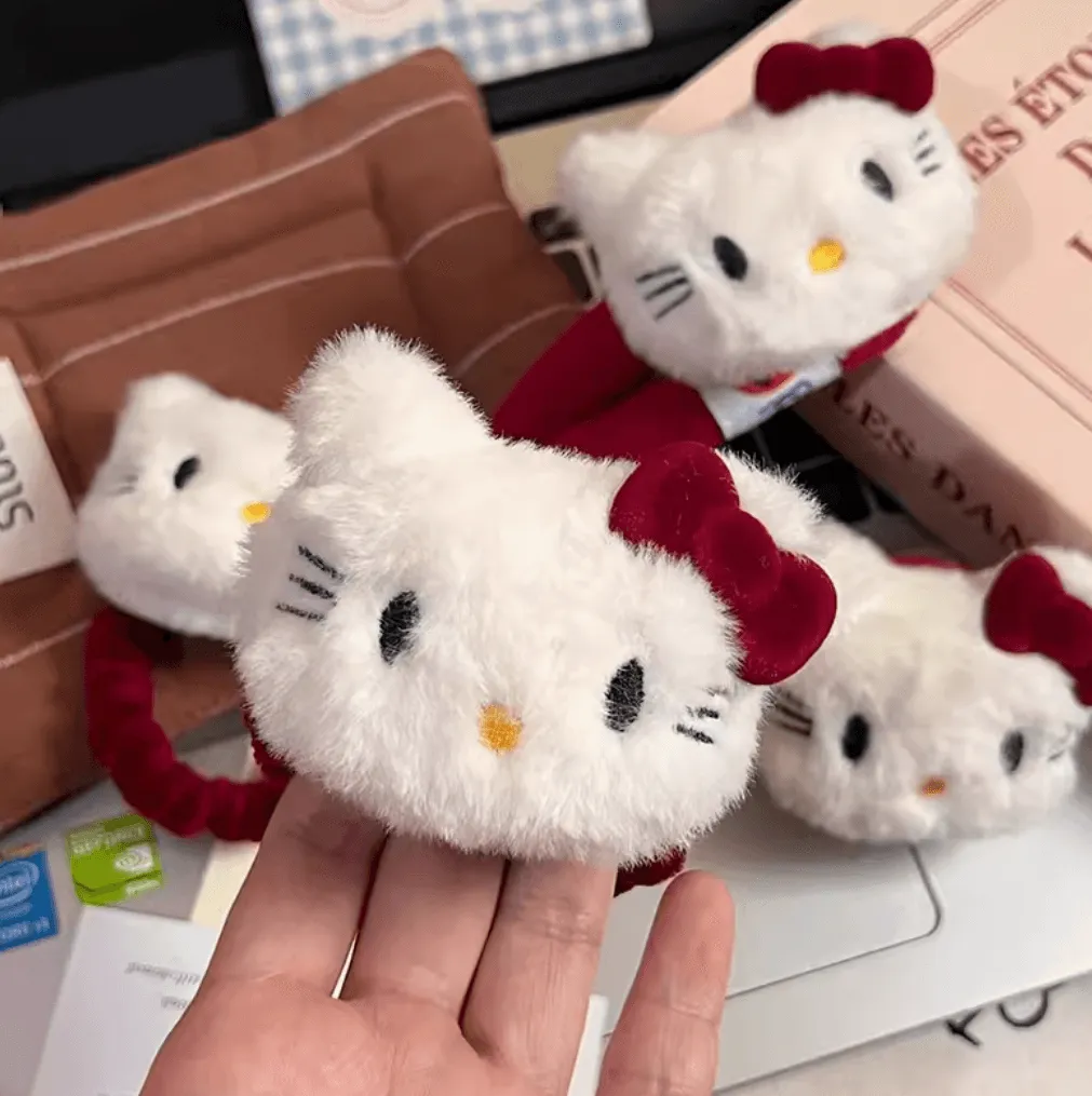 These Hello Kitty Hair tie are designed to securely hold hair without causing creases or damage, making them perfect for daily use. Suitable for all hair types, they offer a slip-free grip and are ideal for makeup application, or washing your face, while their stylish Hello Kitty bow adds a touch of cuteness to any look.
