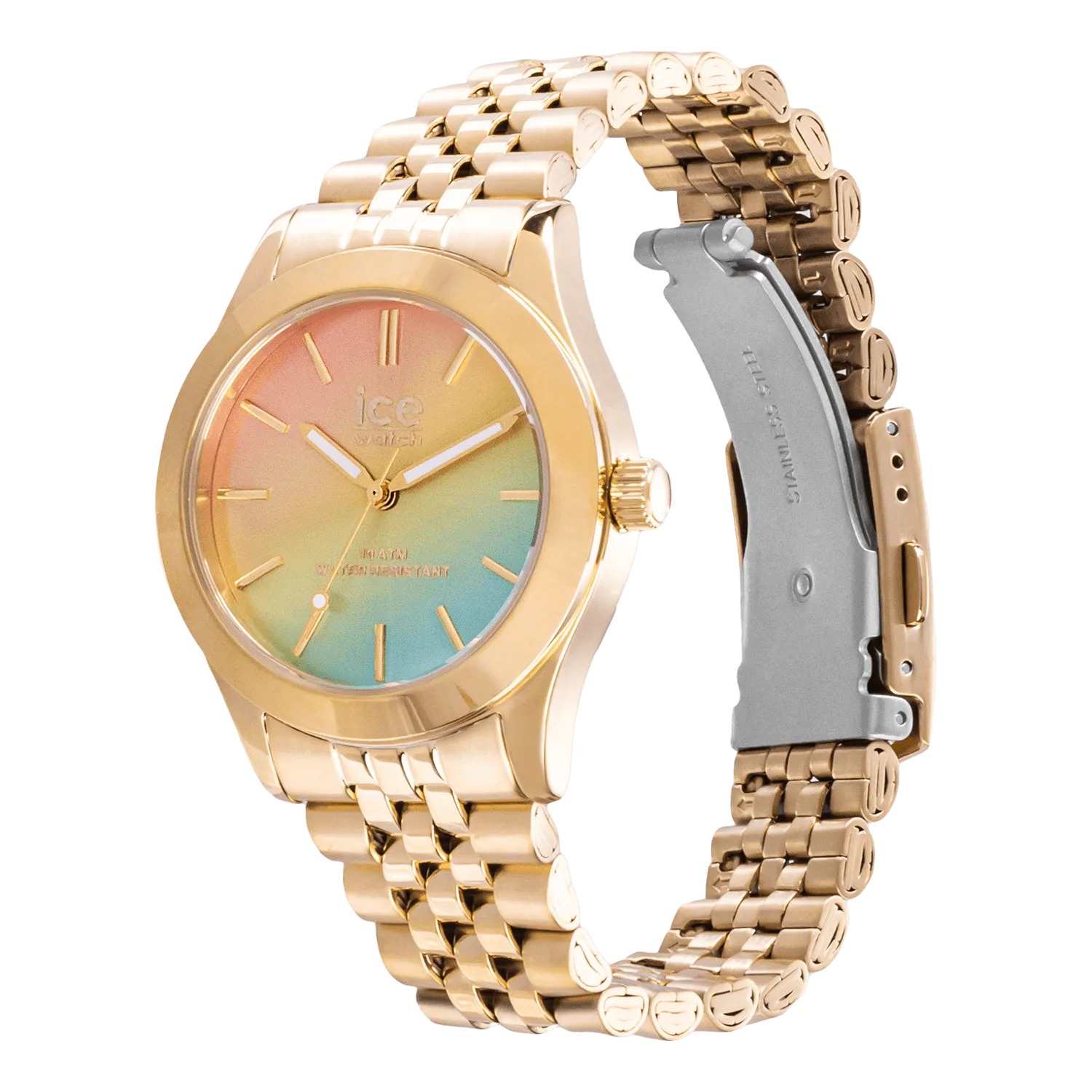 This Ice-Watch watch has a case made of stainless steel with a diameter of 35 mm and is fitted with a stainless steel band. Inside the case lies a Miyota movement and the watch features a Mineral crystal.