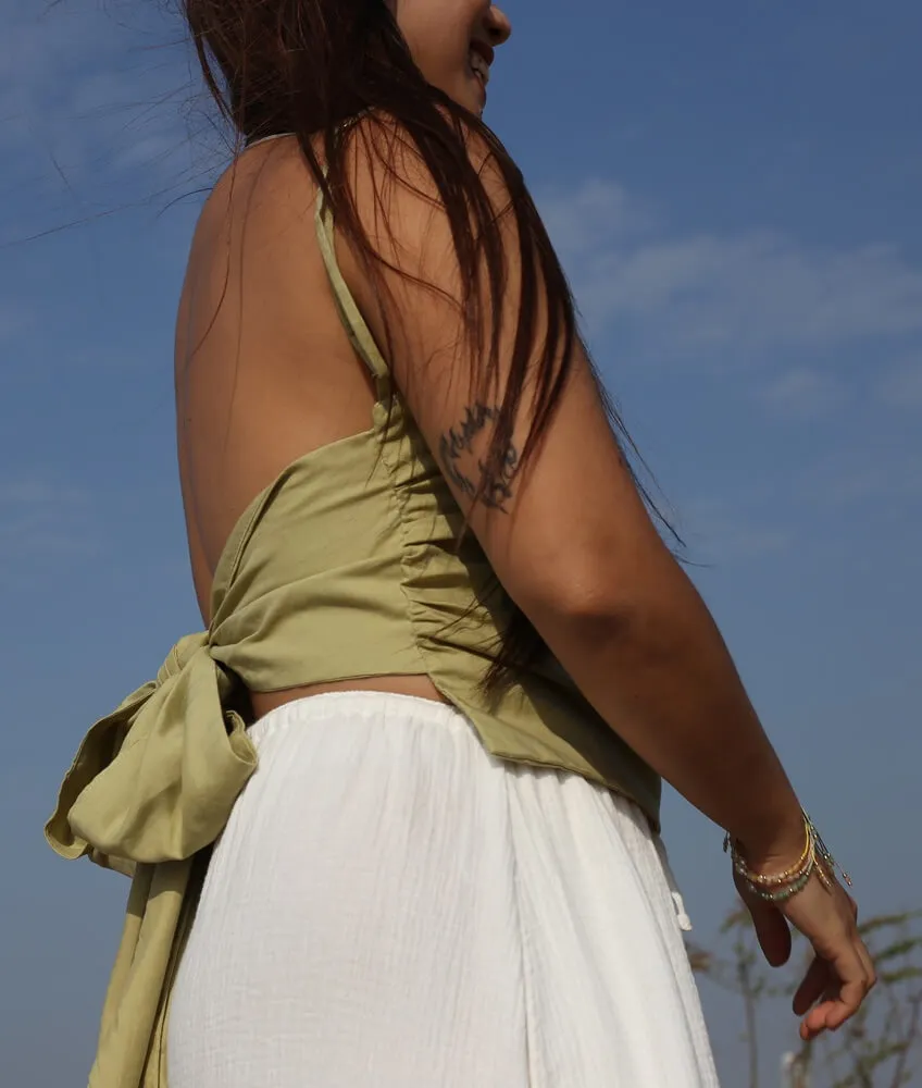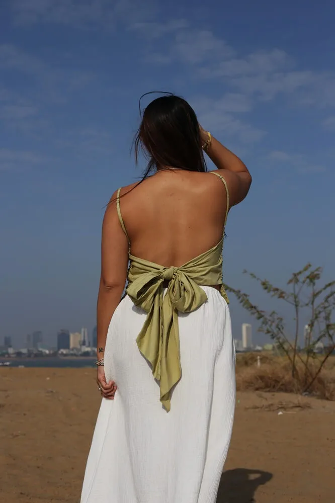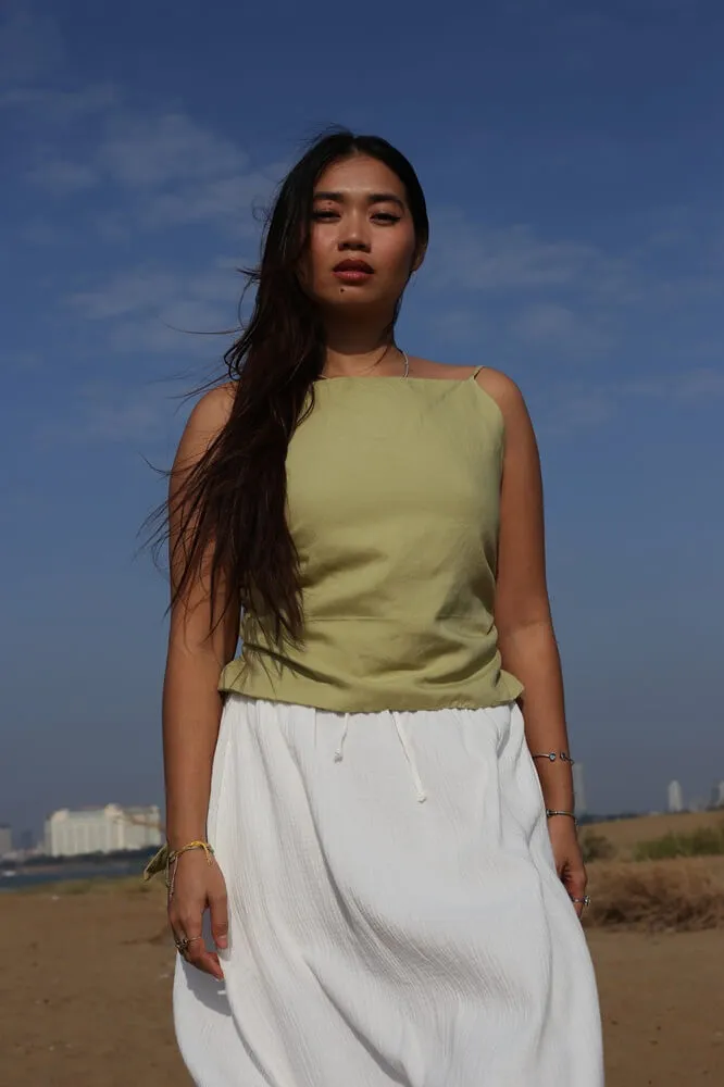 Softly structured, tie-back linen cami that blends elegance with comfort, perfect for hot days.