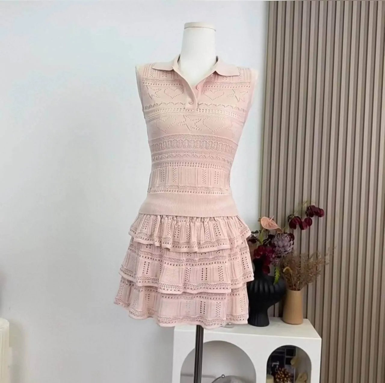 Heart-Shaped Hollow-out, knit vest top and tiered skirt