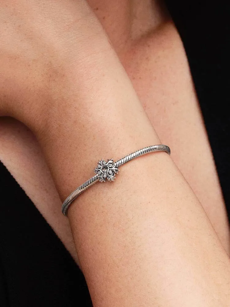 Celebrate winter’s magic with the openwork Snowflake Charm. Crafted in sterling silver with sparkling cubic zirconia, it captures frost’s delicate beauty. Wear it solo or stacked for a seasonal glow-up.