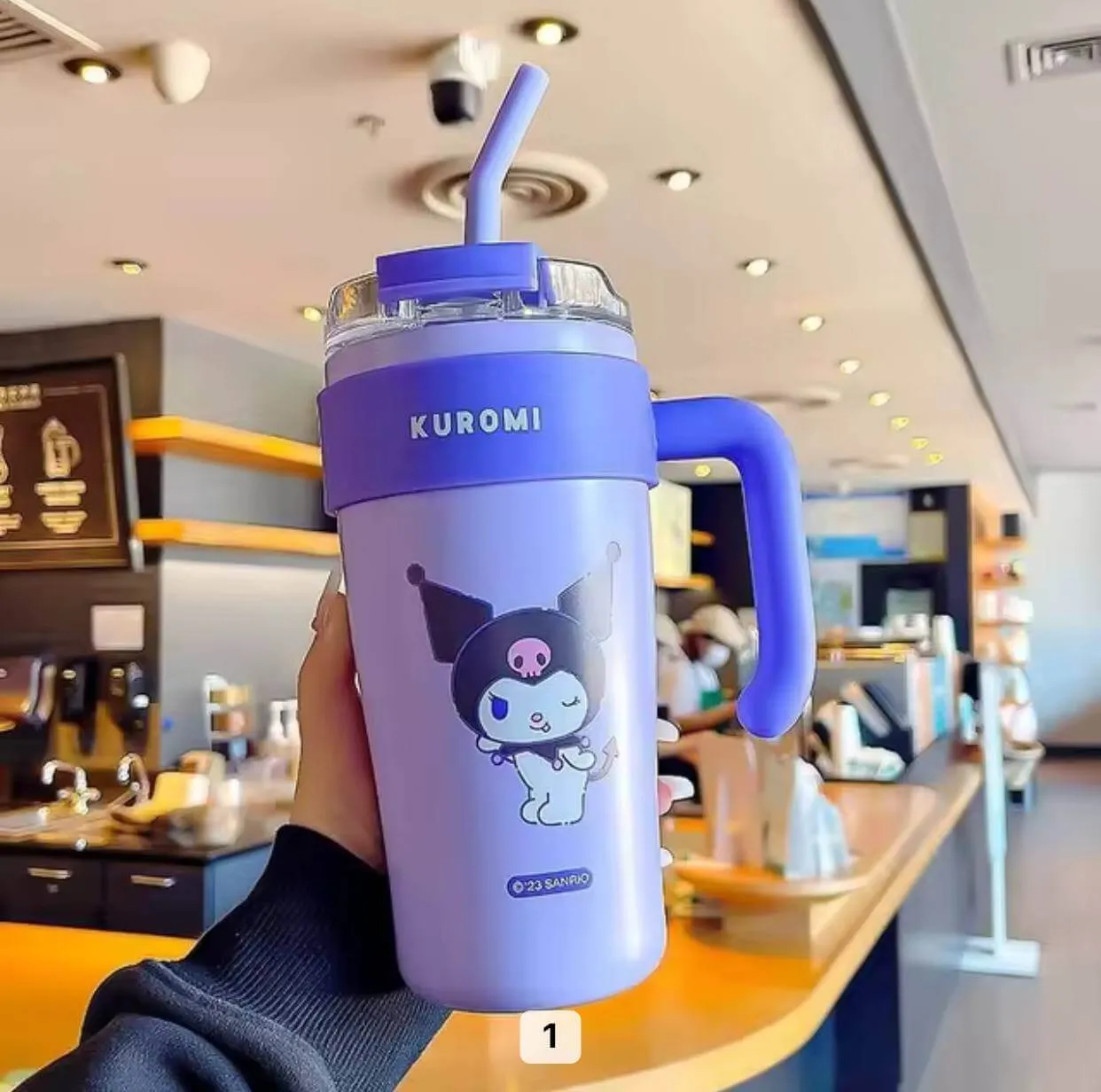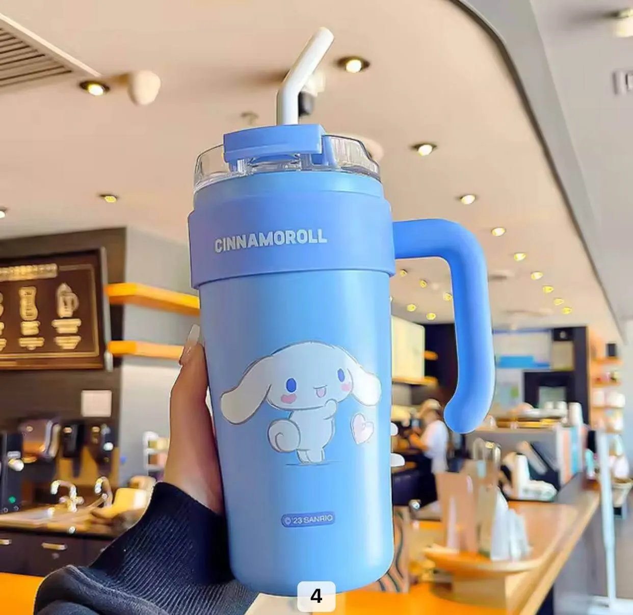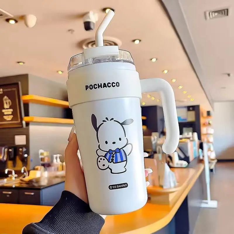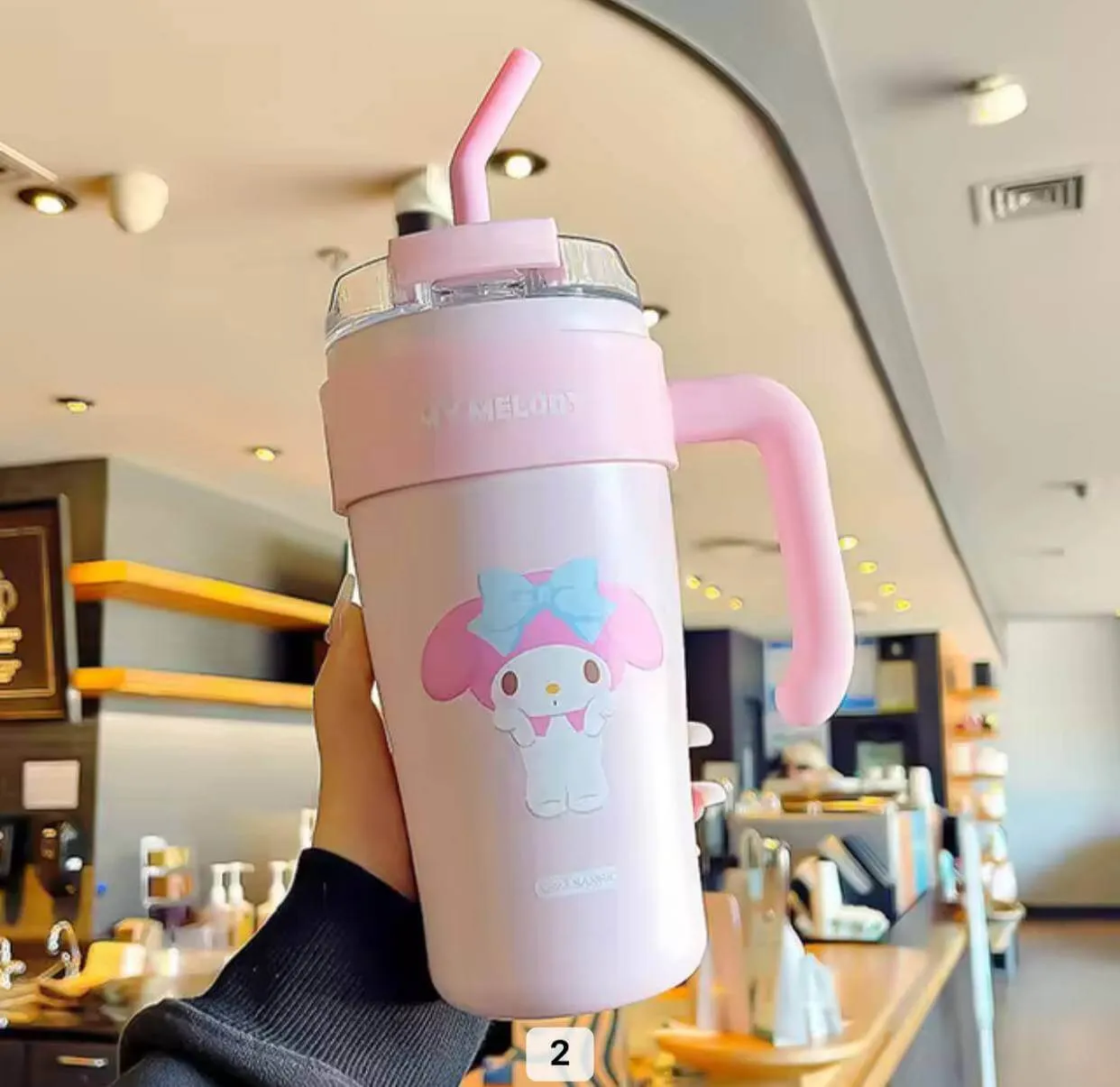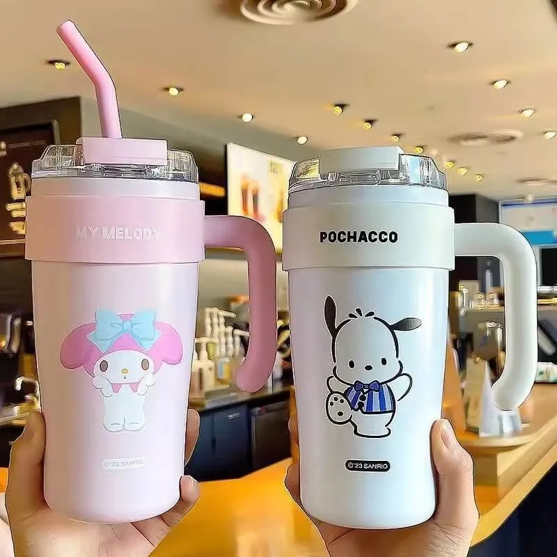 Kawaii Cartoon Kitty 860ML Kids Thermos Straw Cups Hello Cat Cinnamoroll Large Capacity 316 Stainless Steel Car Vacuum Cup